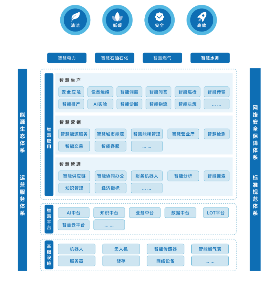 智慧能源解決方案以智能化為核心,滿足石油、電力、水務(wù)等能源行業(yè)的智慧管理需求,采用控、管、維一體化技術(shù)架構(gòu),多網(wǎng)絡(luò)融合及人工智能技術(shù),實(shí)現(xiàn)數(shù)據(jù)可視化、信息圖形化、控制智能化。